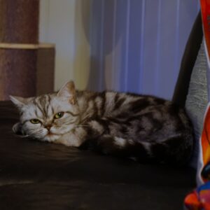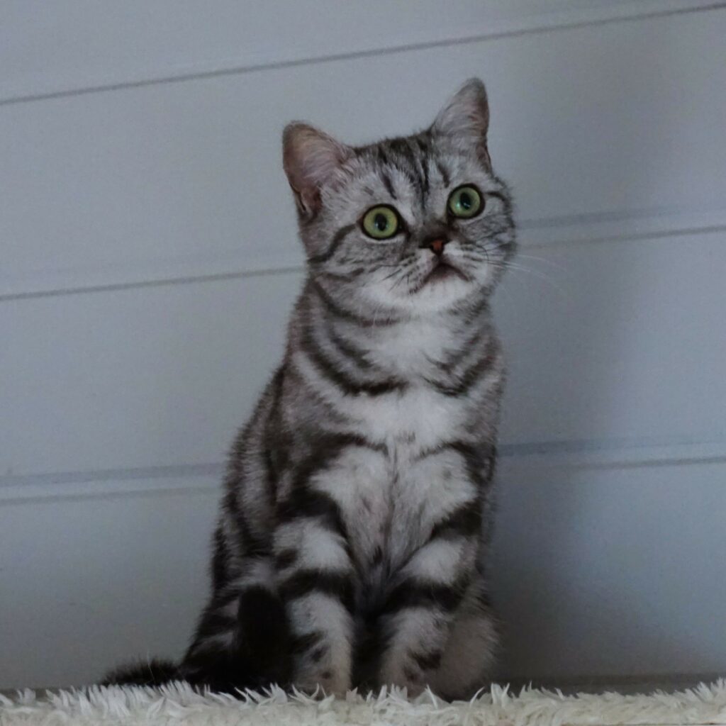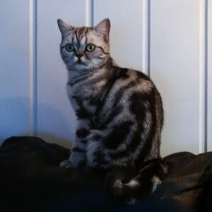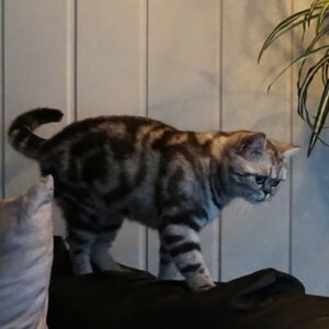 BSH ns 22 64 – Sort sølvtabby grønnøyd Britisk Korthår kastrat jente