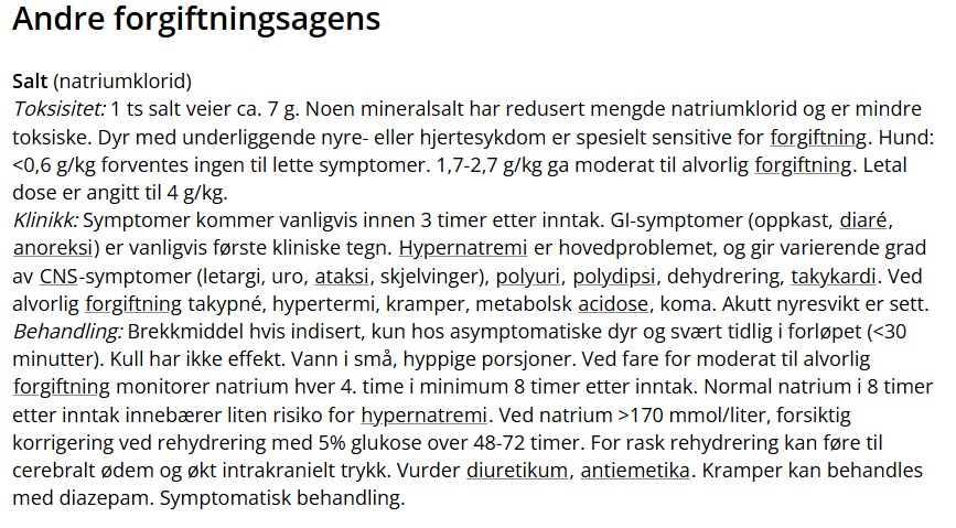 Salt (små mengder salt er ok en sjelden gang, som f.eks. to reker eller en spiseskje tunfisk hver lørdag) Kattemat med tunfisk er greit, det er ikke tilsatt salt.