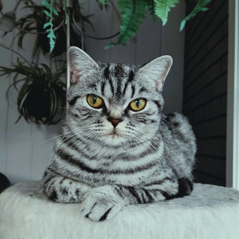BSH ns 24 64 – Sort sølvspottet grønnøyd Britisk Korthår jente
